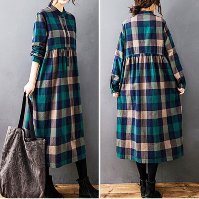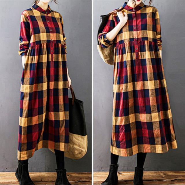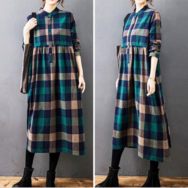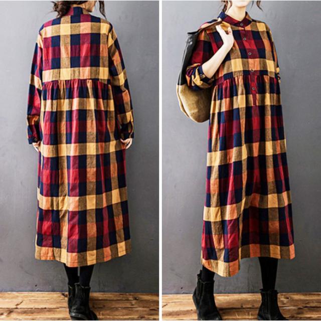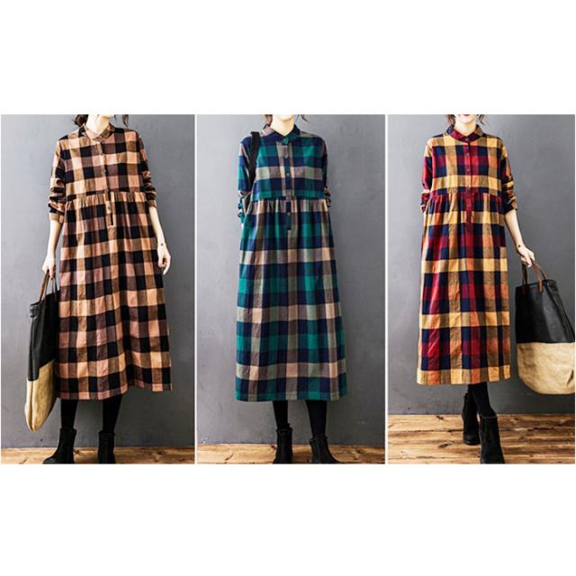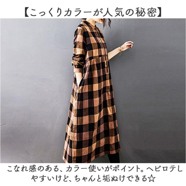 シャツワンピース チェック柄 レディース 通販 シャツワンピ カジュアルワンピース カジュアルワンピ ギャザー 長袖 チェック ゆったり 体型カバー ミモレ丈 ミモレ カジュアル