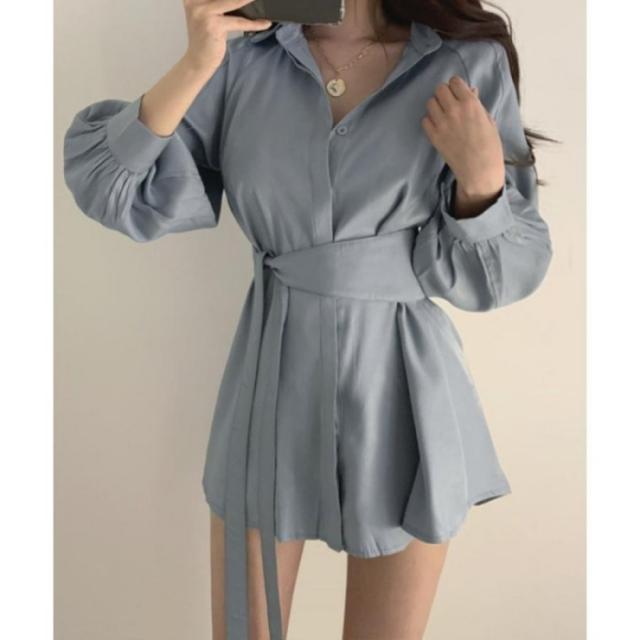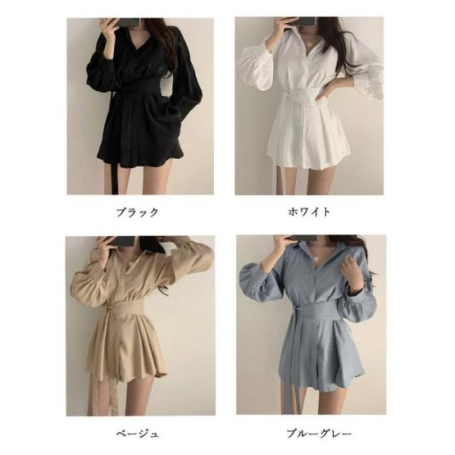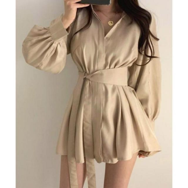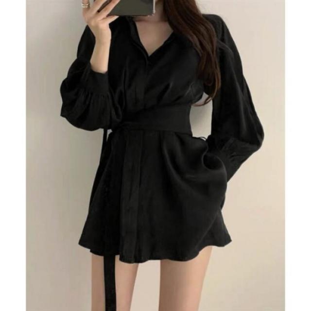きれいめ ボリューム袖 薄手 襟付き 体型カバーワンピ オルチャン 女性らしい おしゃれ ショート丈 ミニワンピース