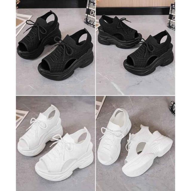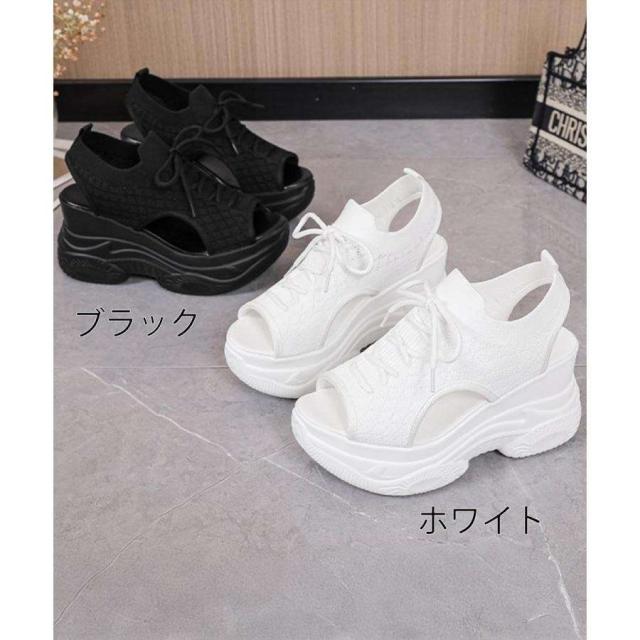 ボリュームソールサンダル レースアップ靴 歩きやすい痛くないスタイルアップ 韓国風サマーシューズオープントゥ 通気性軽量