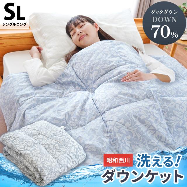 羽毛 の 夏掛け 洗えるダウンケット 昭和西川 シングル ロング ホワイトダック ダウン70% 肌掛け 布団 ウォッシャブル 夏用 詰め物250g 2025y5