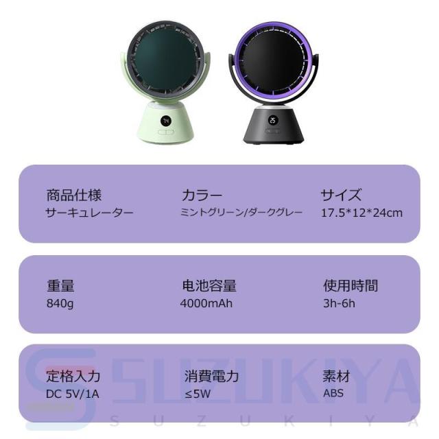 サーキュレーター 扇風機 dcモーター羽根なし 左右首振り usb充電 LED照明機能付き 吊り下げ 自動首振り 小型卓上 湿気 省エネ 静音 首振り 3D送風 2025