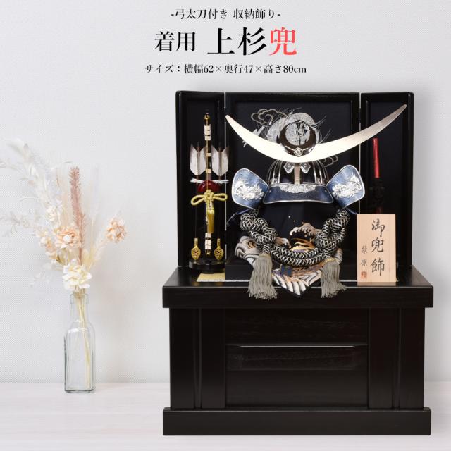 五月人形 コンパクト 着用兜 5月人形 収納飾り 23号 武将 青 上杉謙信 おしゃれ 端午の節句 木製 兜飾り 初節句 かぶと ミニ 2025