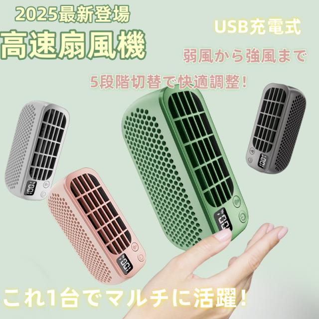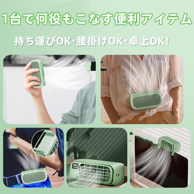 扇風機 2026年新登場 ベルトファン USB充電式 手持ち/首掛け/腰掛け/卓上 携帯扇風機 5段階強風 USB Type-C充電 最大