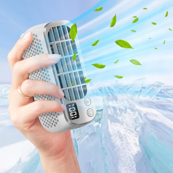 AnT 卓上クーラー 2026年新登場 手持ち/首掛け/腰掛け/卓上 携帯扇風機 5段階強風 USB Type-C充電 最大 18 時間のバッテリー寿命 小型 静音 羽根なしハンディファン 強力 暑さ対策グッズ/熱中症対策/自宅/屋外/オフィス用 おしゃれ ストラップ付き (ホワイト) お中元 夏 ギフト人気