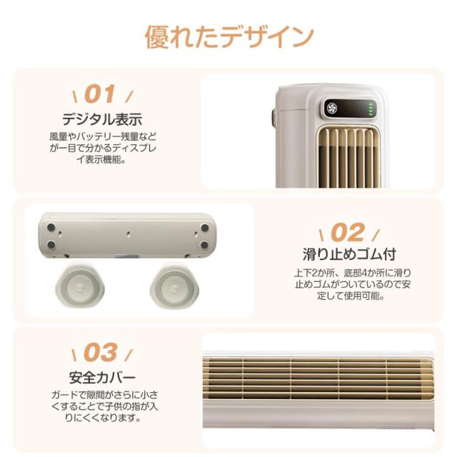 ★大容量3600mAhバッテリー内蔵し、低消費電力で長時間のコードレス送風できます。