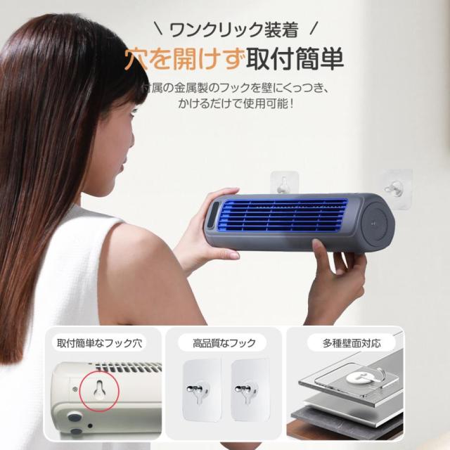 ■【壁掛け扇風機として 】付属の金属製のフックを壁にくっつき、かけだけで使用可能。