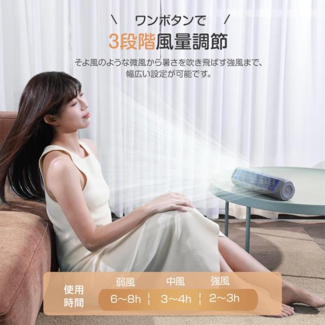 ■【最大8時間連続稼働可能】大容量3600mAhバッテリー、長時間のコードレス送風!