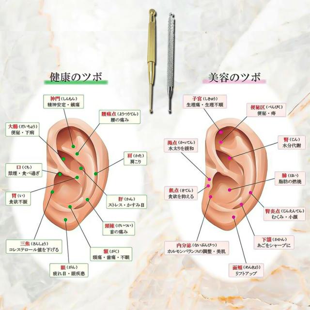 | 関連ワード | 耳つぼジュエリー 美容・健康 小顔効果 ダイエット効果 ストレス緩和 美白・肌ケア 関節痛緩和 筋肉疲労時軽減 食欲抑制 疲労回復 耳ツボ ジュエリー ピアス イヤリング 耳つぼ健康法 | ||||||