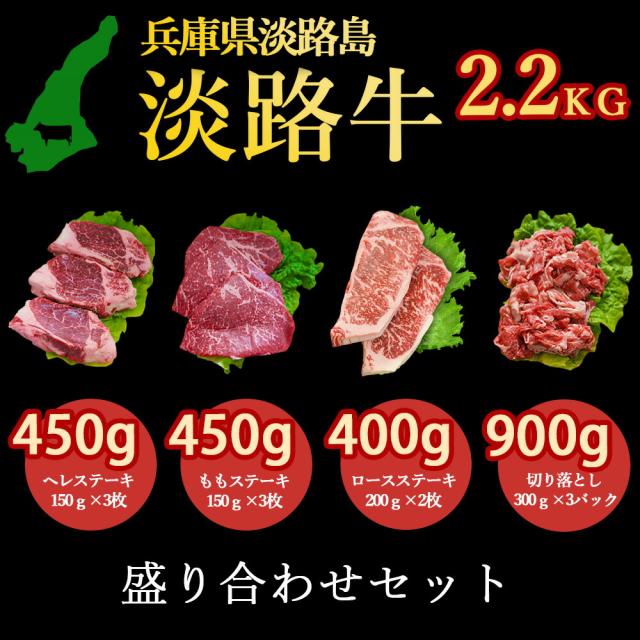 熟成淡路牛 淡路牛の旨み凝縮 4種 2.2kg 盛り合わせ ヘレステーキ450g/ももステーキ450g/ロースステーキ400g/切り落とし900g セット商品 淡路島の厳選された畜産農家の牛肉 各部位から嬉しいセット高級食材 あわじ牛 ステーキ 焼肉 冷凍 産地直送 お取り寄せグルメ