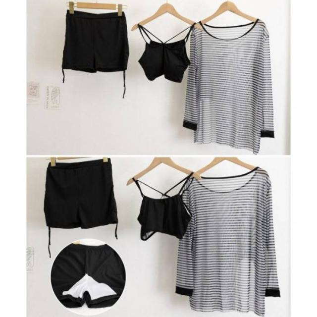 セパレート水着大人可愛い ママ水着 ラッシュガード おしゃれ 水泳スイムウェア 室内プール水着 タンキニ 旅行水着高校生 モノトーンでシンプルながらもスタイリッシュな水着3点セット