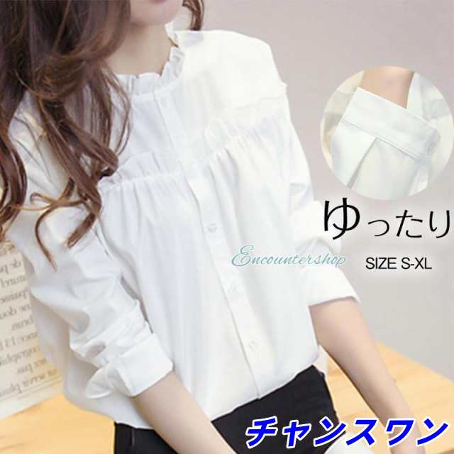 通勤OL 長袖 ブラウス 綿100% フリルネック スタンドカラー 白シャツ 着痩せ 韓国風 フォーマル レディース シンプルデザイン トップス