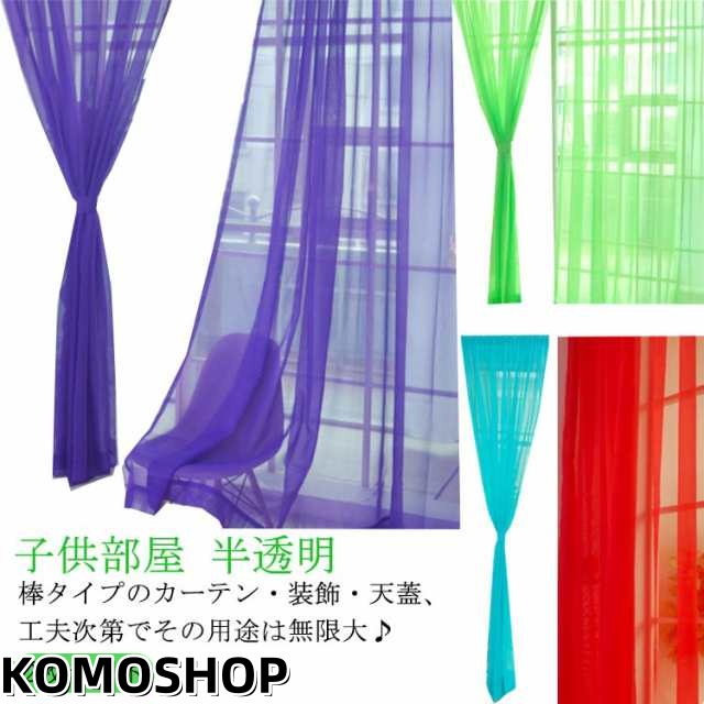 | 棒タイプのカーテン・装飾・天蓋、工夫次第でその用途は無限大♪ ふわふわ軽くカラフルなレースカーテン。子供部屋や模様替えにシンプルなのでとっても使いやすい! ポリエステル100%・洗濯機で丸洗いOK! 20色ご用意しておりますので、様々な組み合わせをお楽しみ下さい。 ご注意:カーテンレール仕様ではございません。ポールに通す仕様です。カーテンレールは、付属しておりません。 | |