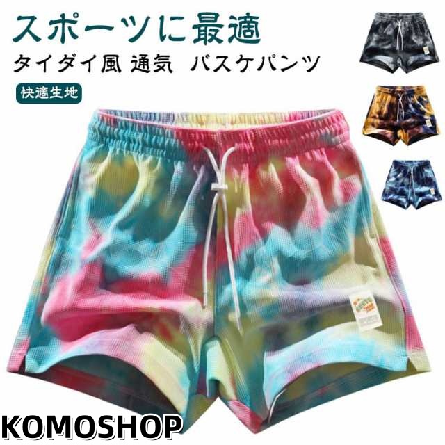 短パン ズボン 半ズボン バスパン おしゃれ バスケパンツ バスケットボール ハーフパンツ ジュニア バスパン スポーツ 膝上 バスケ ショートパンツ ランニング トレーニング 運動着 バスパン タイダイ風 運動会 体育祭 通気