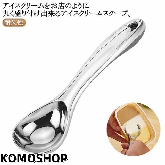 | アイスクリームをお店のように丸く盛り付け出来るアイスクリームスクープ。 スクープの幅が広いのですくいやすい。 凍って硬くなったアイスも差し込みやすい形状。熱伝導ハンドルで、握りやすく、すくいやすく 凍ったアイスを簡単にすくえます。※小さなお子さんがご使用する場合、冷凍庫から出されてしばらく時間をおいてからご使用下さい。 フィット感の良いハンドルで、握りやすい。使った後の置き場所に困らないよう、ハンドル部分に掛け穴もあります。 接続部分が無いので、断裂、劣化などの心配がありません。 アイスクリームだけでなく、フルーツポンチやポテトサラダの盛り付け、フルーツや野菜のくり抜き、味噌をすくう際にも活躍します。 | |