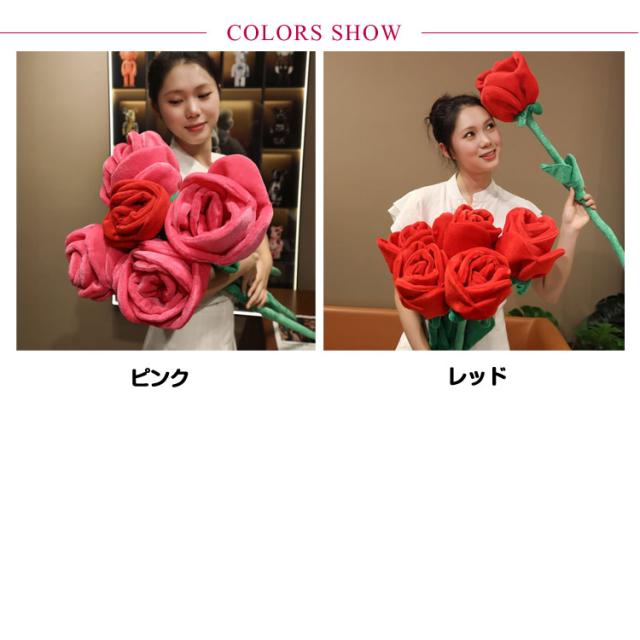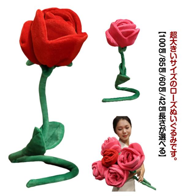 | 超大きいサイズのローズぬいぐるみです。【100cm/85cm/60cm/42cm長さが選べる】 ぬいぐるみなので、お水なし花瓶なしでもずっと鮮やか。 お届け時は茎を曲げた状態ですが、ワイヤー入りなので簡単に自由に整えていただけます。 | |