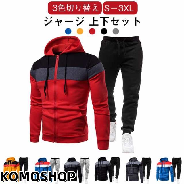 ランニングウェア トレーニング 上下 マルチカラー セットアップ 送料無料 メンズ ジム ジャージ スポーツウエア ジャージ パーカー イージーパンツ 部屋着 ルームウエア 3色切り替え お洒落 春 秋