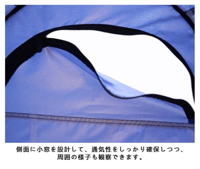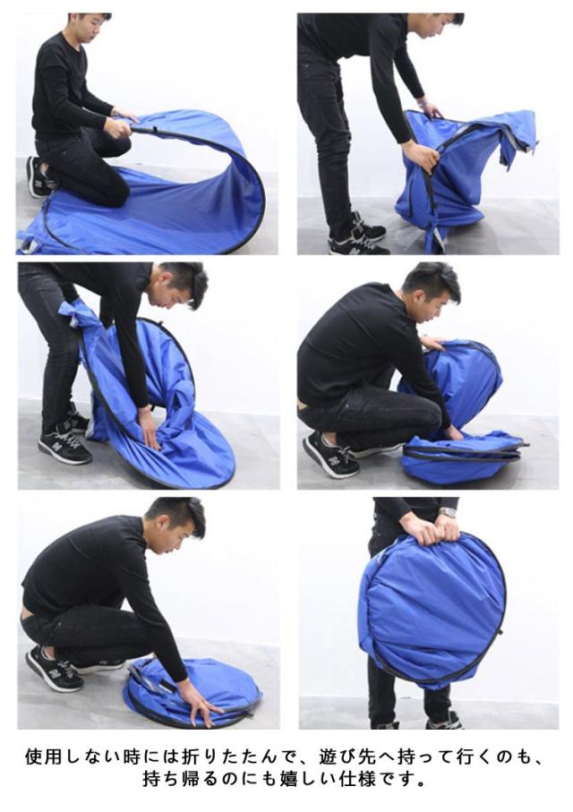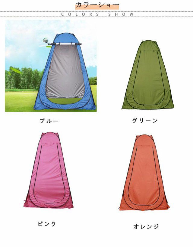| アウトドア、イベント、防災用など着替えスペースを確保する簡易テント。 災害時の着替え場所の確保や、簡易トイレの目隠しにも役立ちます。 ダブルファスナーで内外両側から開閉、タッセルで巻き止めできます。 ポップアップ式テントで、ワンタッチで設置できるので初心者や女性でも簡単に設置できます。 防水生地を使用し、万が一の急な雨にも、慌てることなくお着替え可能です。 内部にはスマホ?などの小物が収納できるポケットも作られます。 側面に小窓を設計して、通気性をしっかり確保しつつ、周囲の様子も観察できます。 タオルや着替え、ペーパーを掛けるループが設置しております。 使用しない時には折りたたんで、遊び先へ持って行くのも、持ち帰るのにも嬉しい仕様です。 | |