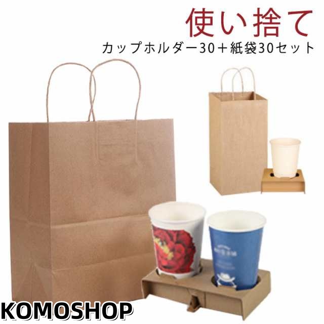 【カップホルダー30点+紙袋30点セット】 お持ち帰り セット 紙袋 カップホルダー 紙袋 ドリンクホルダー 使い捨て 【カップホルダー30点+紙袋30点セット】 業務用 4カップ用 手提げ袋 セット 紙製