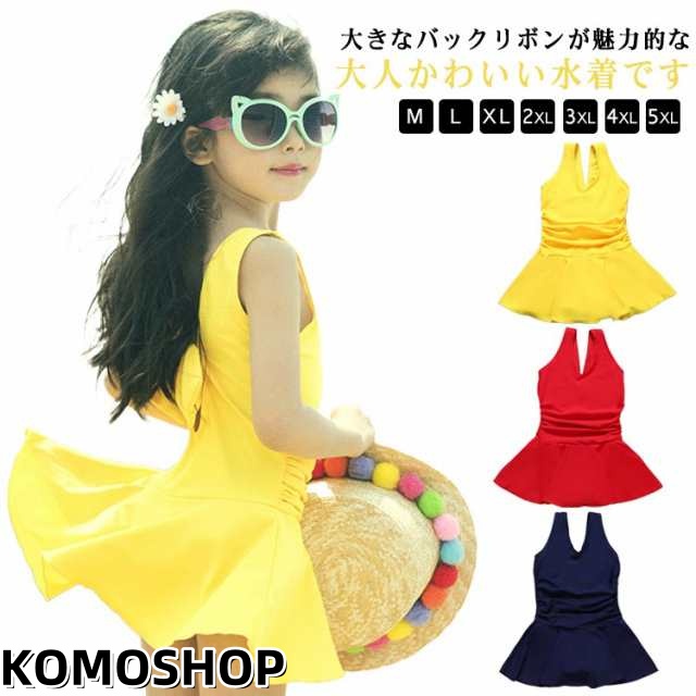 キッズ 子供 水着 女の子 女の子 ジュニア 水着 子供水着 かわいい ビッグバックリボン ビッグバックリボン 韓国 女児 水遊び ストレッチ おしゃれ 大きいサイズ ワンピース L M XL 2XL 3XL 4XL 5XL