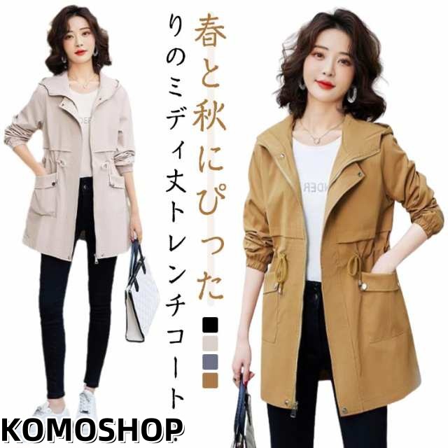 | ・春と秋にぴったりのミディ丈トレンチコート! ・ゆったりとしたHラインシルエットで、気になる部分を優しくカバー。フード付きで急な雨にも対応できます。 ・ウエストの引き紐でボリューム調節可能。両サイドの大容量ポケットはスマホや小物がすっきり収納。 ・カジュアルなデニムからオフィススタイルまで、さまざまなコーディネートにマッチ。 ・『動きやすさ』と『おしゃれさ』を両立した1枚。 | |