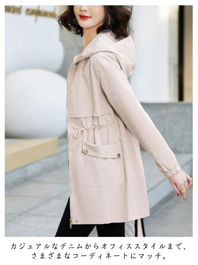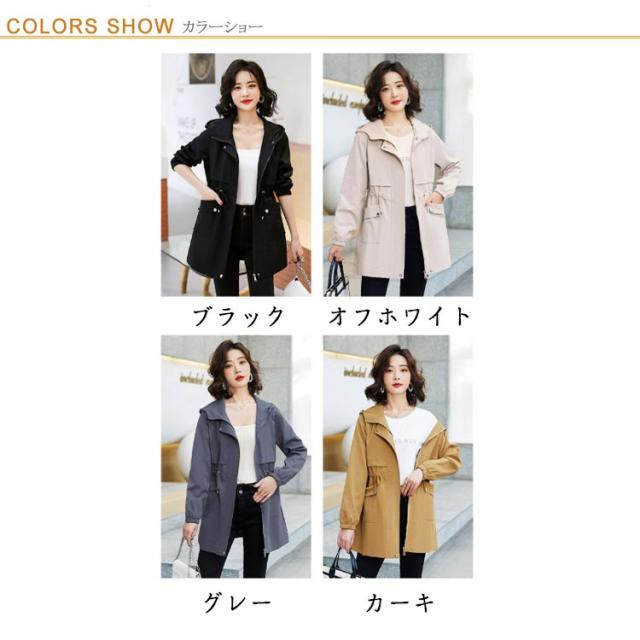 シルエット調整 トレンチコート 薄手 春秋 レディース スリム トレンチコート ウエスト調整 大ポケット ミディ丈 シンプル フード付き 無地 快適 大人 Hライン 肌触り ゆったり カジュアル 引き紐 通勤