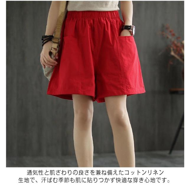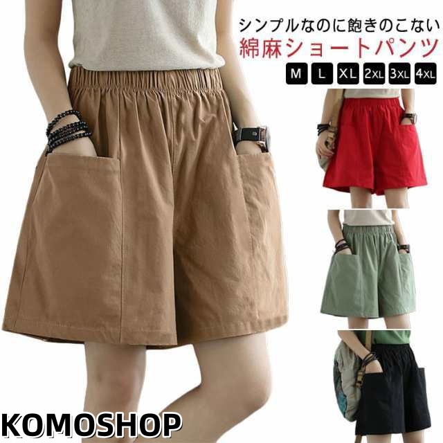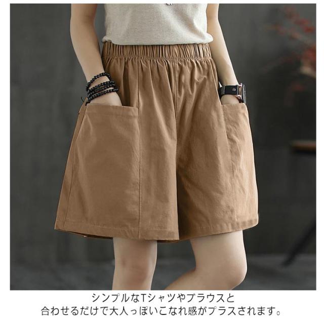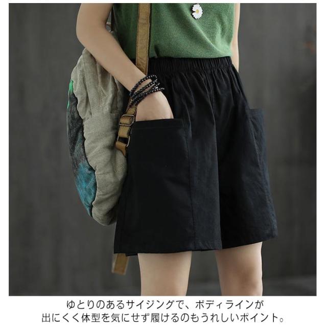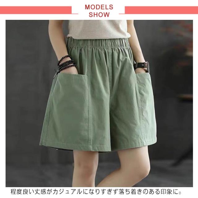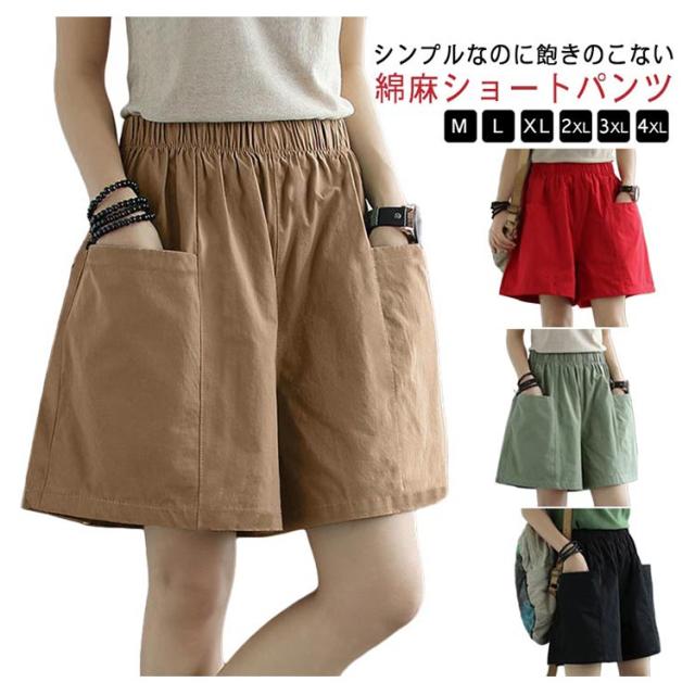 ショートパンツ レディース 綿混 無地 大きいサイズ ハーフパンツ カジュアル ウエストゴム 夏 ポケット付き ショートパンツ ボトムス 薄手 涼しい 夏 短パン キュロット シンプル ゆったり 体型カバー 着?せ 大人 女性
