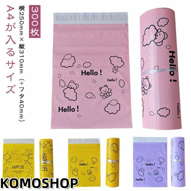 300枚 宅配 通販 袋 フタ A4 ビニール テープ 梱包袋 配送袋 かわいい くま 宅配ビニール袋 宅配袋 透けない デザイン 封筒 ポリ袋 防水 宅配 ゆうパケット クリックポスト対応 ネコポス 宅配ポリ袋 ゆうメール DM便