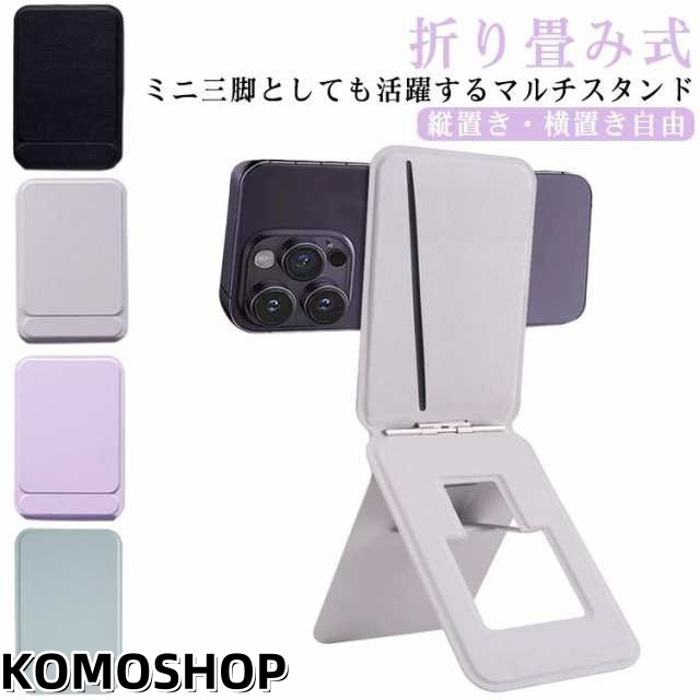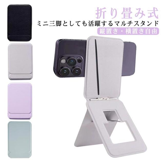 マグネット スマホスタンド MagSafe対応 カードケース ウォレット 三脚 撮影用 マグネット式 折りたたみ スマホグリップ 超薄型 自撮り カード入れ スマホホルダー スリム スマホ置き カードケーススタンド