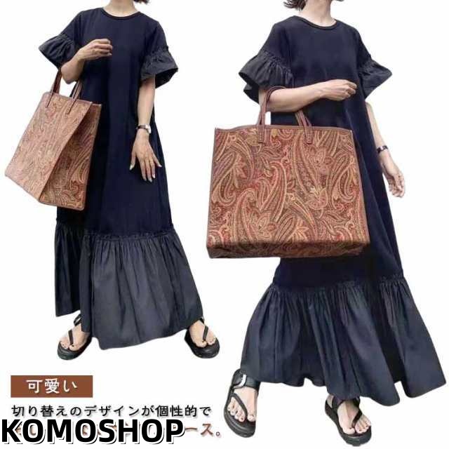 マキシ丈 ボタン 夏 半袖 カジュアル こなれ感 ワンピース おしゃれ ドレス 薄手 ロング丈 涼しい ワンピース お出かけ ボリューム袖 Aライン ゆったり 体型カバー 可愛い ワンピ フレア フレア袖 韓国 コーデ 春 夏 秋 ブラック 黒 20代 30代 40代