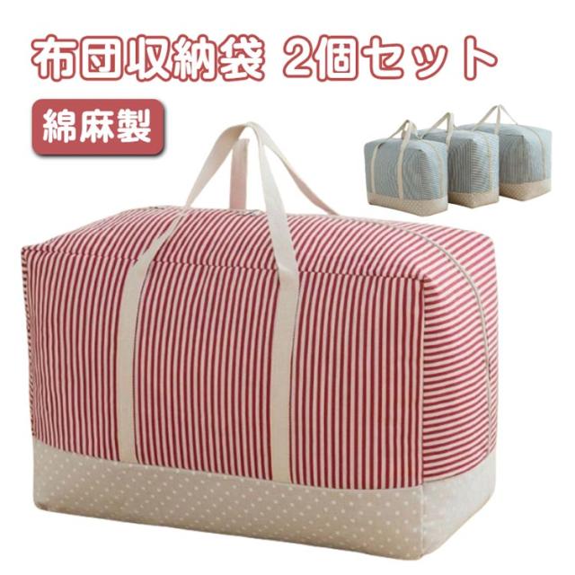 布団収納袋 ふとん収納袋 綿麻製 敷布団 ふとん収納袋 持ち手付 大容量 衣装ケース 2個セット 収納 押入れ収納 ふとん収納カバー 引っ越し 整理整頓 収納 軽量 洋服 布団収納ケース 布団 収納 2個セット 北欧風