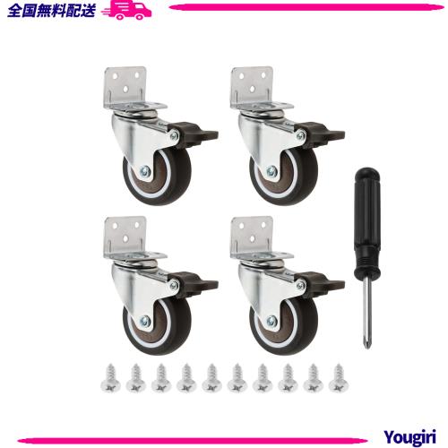 ◆商品名:Yetaha キャスター 2インチ L型プレート 合計耐荷重108kg 360度回転 静音 家具交換用 ドライバー ねじ付き 4個組 (ストッパー有り×4)