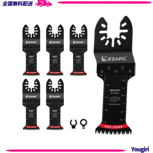 EZARC(イザーク) 弓型先端 マルチツール替刃 バイメタル 木工用 硬木対応 アダプター付き 安定 高速切断 精密切断 5枚入