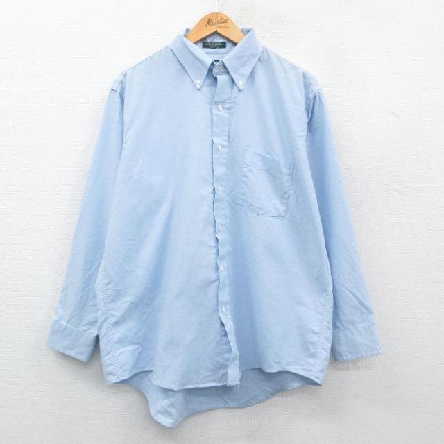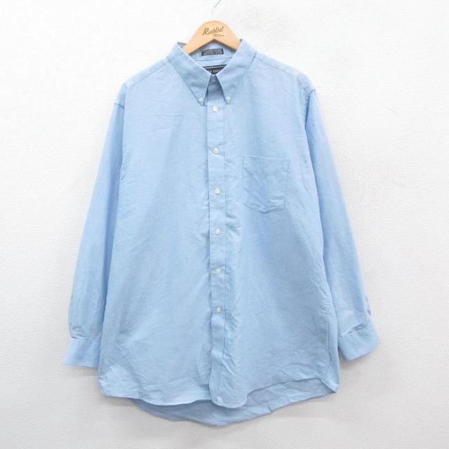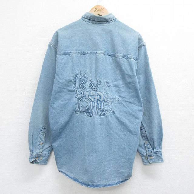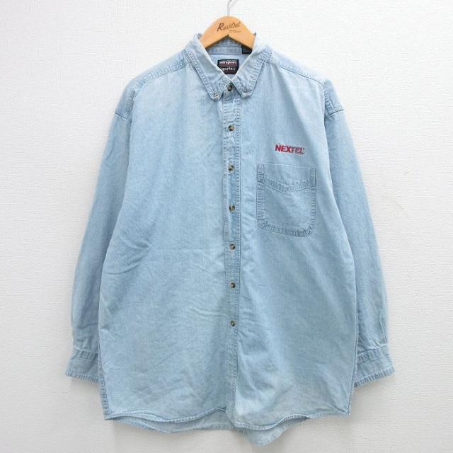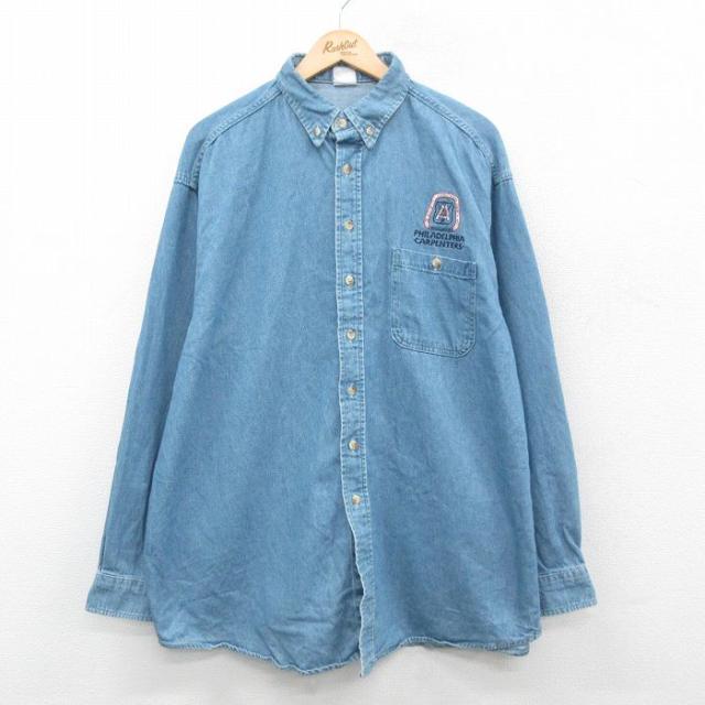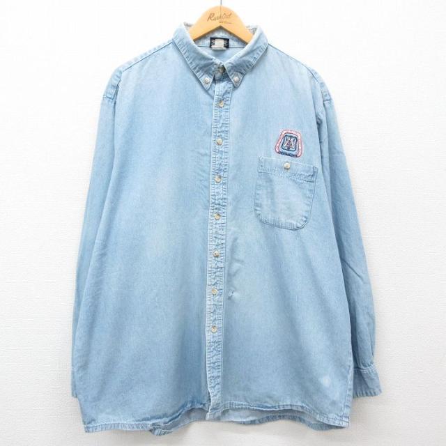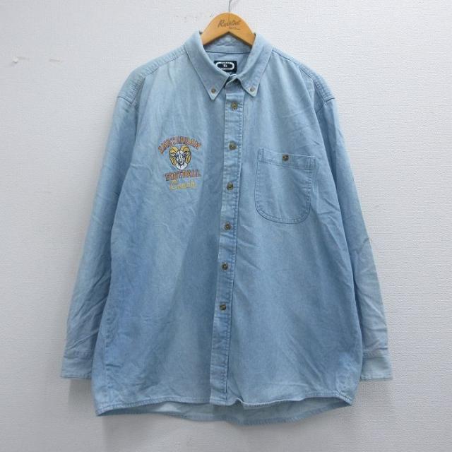 【商品名】 XL★古着 長袖 シャツ メンズ 90年代 90s AMSTERDAM フットボール 大きいサイズ ボタンダウン 薄紺 デニム