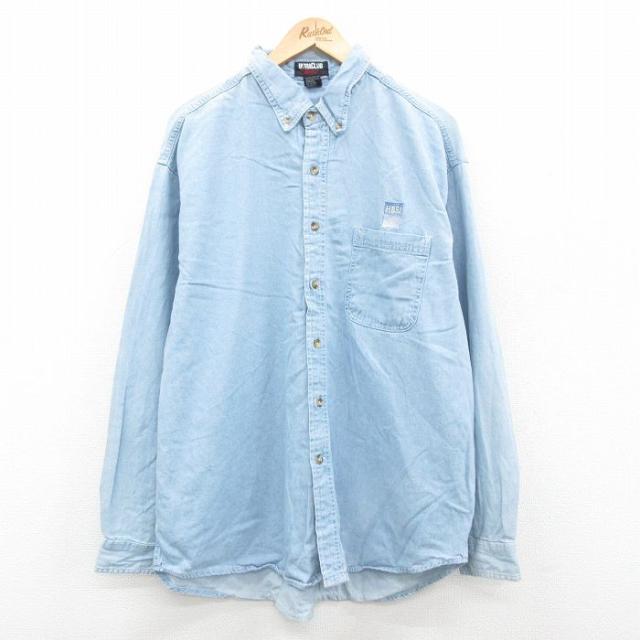 古着 長袖 シャツ メンズ 90年代 90s AMSTERDAM フットボール 大きいサイズ ボタンダウン 薄紺 ネイビー デニム XLサイズ 中古 中古 古着