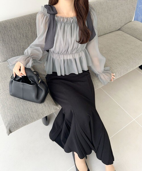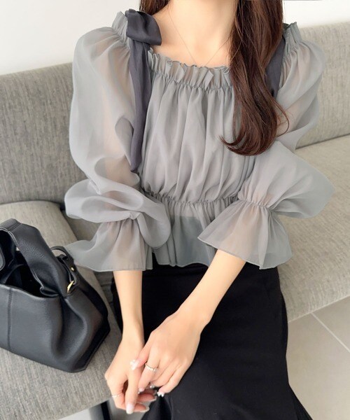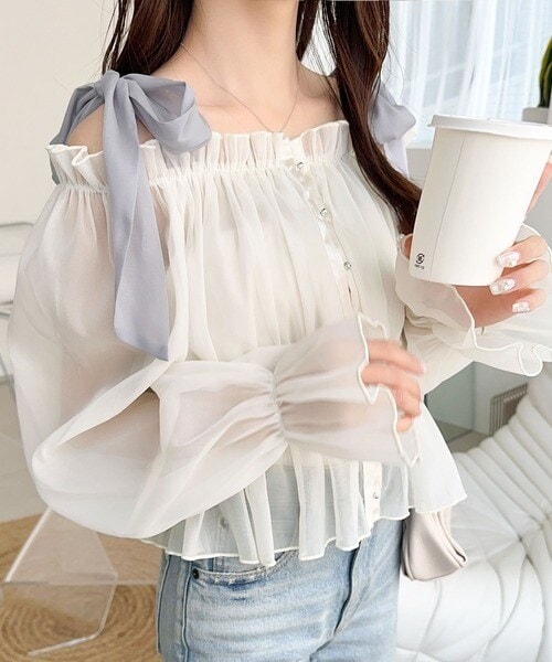肩リボンオフショル2wayオーガンジーブラウスの登場。