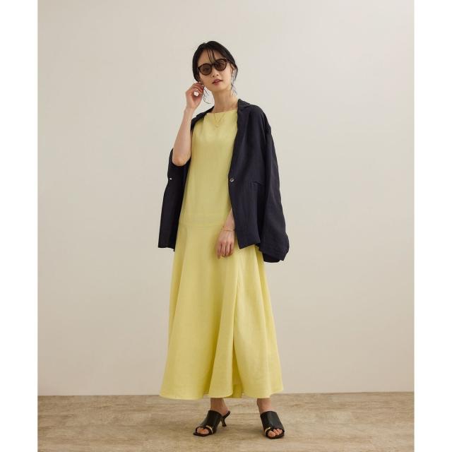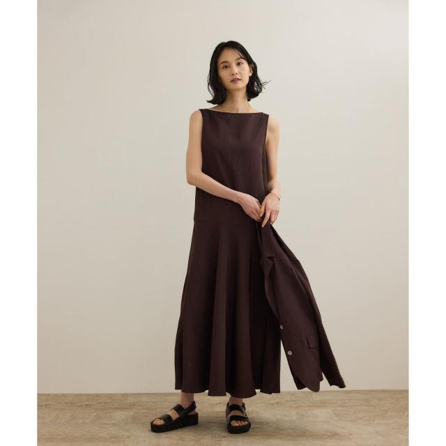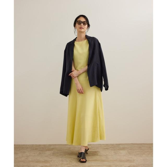レーヨンリネン スラッシュドネックワンピース【セットジャケット対応】
