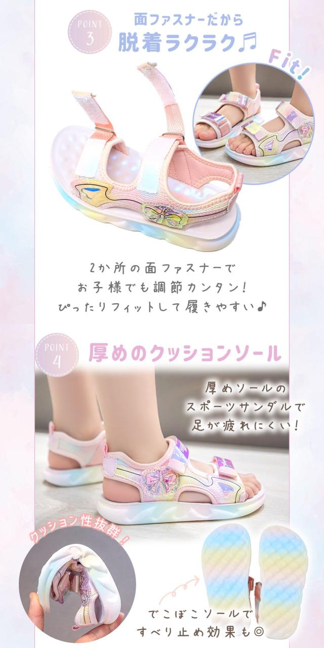 サンダル キッズ 女の子 子供 グラデーション ガール つっかけ グラデーションカラー キラキラ スポーツ 疲れない かわいい カパカパしない 面ファスナー グリッター リボン ラメ すべり止め マジックテープ 蒸れない 夏 プール 海 S M L XL MILASIC ポイント消化