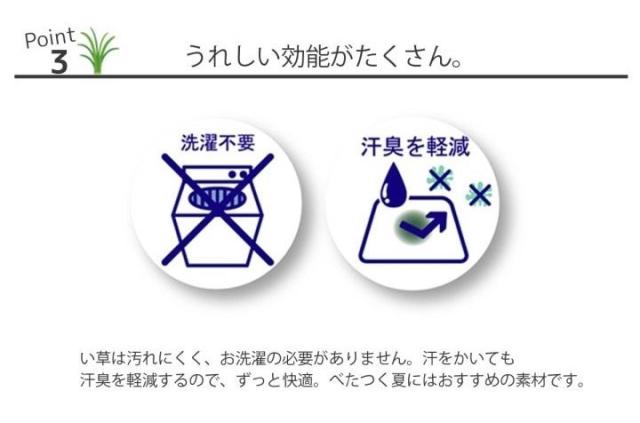 国産のイ草を使用したイ草枕です。枕の左右には高さ調節用のヒモ付き。左右のヒモをきつく結べば高めの枕に、ゆるく結べば低めの枕になって便利です。少し小さめのサイズですので、横のヒモをほどいてお子様用の枕としてもご使用頂けます。快眠い草の効能として1.綿の約2.5倍の吸湿力 2.蒸れにくい。汗による湿気を吸うことにより温度を下げ快適な就寝を促します。 3.汗のにおいを軽減。汗のにおいの元となる化学物質を90%以上抑えます。などがあります。国産(九州産)のしなやかなイ草を使用していますので、柔らかく、すべすべしたとした肌触りです。中材には通気性のよいポリエチレンパイプを使用しています。パイプのため通気性がよく、熱がこもりにくいのが特長です。い草の表面に天然青森ヒバ加工を施しています(抗菌・防臭効果)。青森県のヒバの木から抽出した「ヒバ油」をメーカー独自の技術で材料や商品に加工しました。「ヒバ油」には、ヒノキチオールという天然物質としては極めて抗菌性の高い成分が含まれ、医療や食品など多分野で利用研究が進められています。