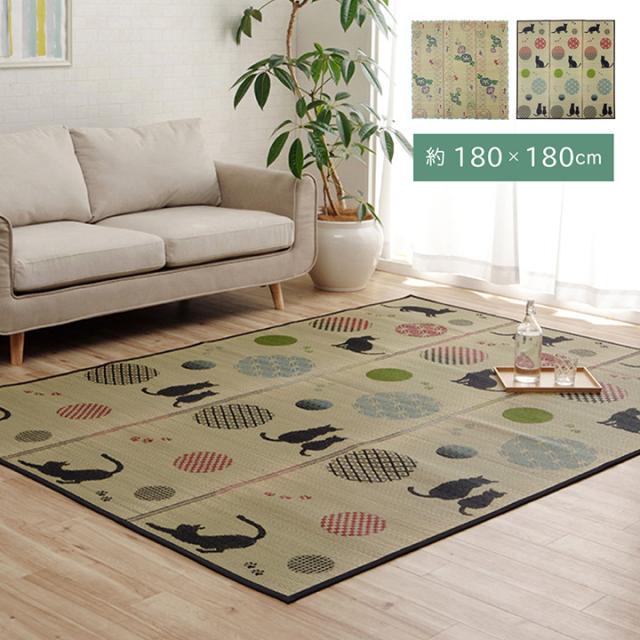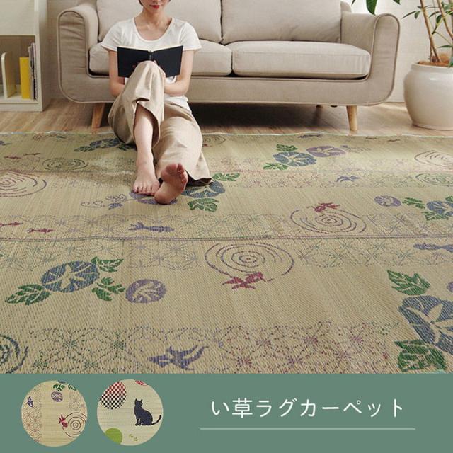 ラグ い草 金魚 和 風物詩 コンパクト 滑り止め不織布 自然素材 抗菌防臭 約180×180cm こはる金魚(代引不可)【送料無料】