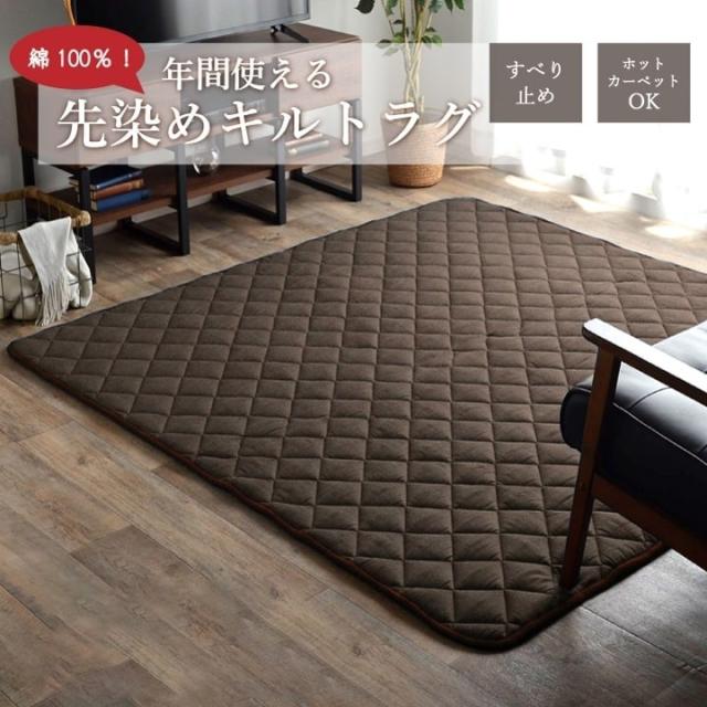 こたつ敷き布団 キルトラグ ラグ カーペット 4畳 先染め 刺し子調 ブラウン 約190×290cm(ホットカーペット対応) 刺し子(代引不可)【送料無料】