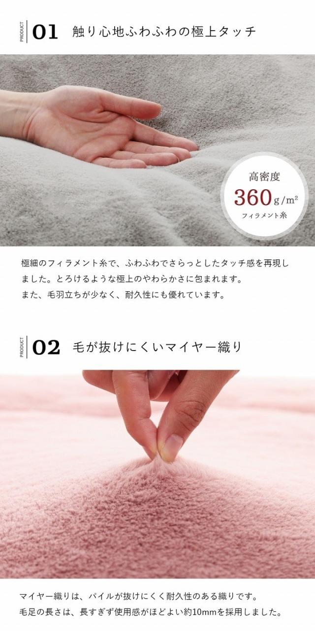 表地にはフィラメント糸でふわふわなフェイクファーを使用しています。フィラメント糸は長い繊維なので短い毛を撚って紡績している繊維よりも遊び毛がでにくいのも特長です。