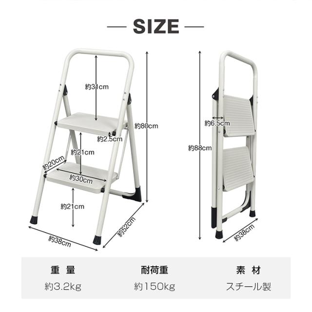 脚立 2段 踏み台 折りたたみ式 2段踏み台 ディスプレイラック 耐荷重約150kg 滑りにくい 簡単収納可能 軽量 持ち運びやすい 安定感 お子様 大人 日常生活 sg235