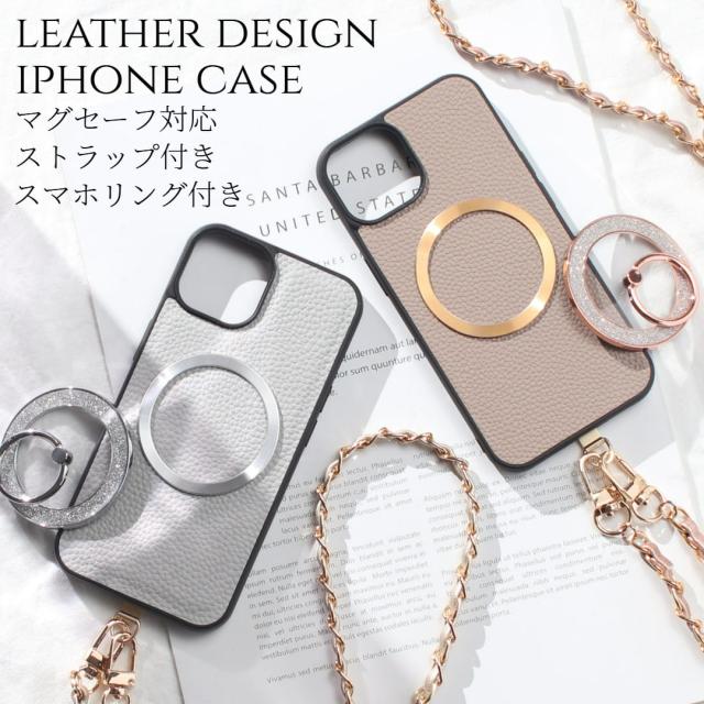 iphone ケース リング付き iphone16 iphone15 iphone14 iphone13 iphone12 pro SE レザー チェーン ストラップ magsafe マグセーフ ショルダー 肩掛け 16e 16pro 15pro 13mini リング アイフォン 16 15 14 13 12 se3 se2 ストラップ付き レディース メタリック 送料無料