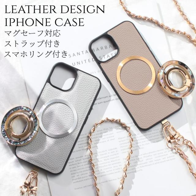 iphone ケース リング付き iphone16 iphone15 iphone14 iphone13 iphone12 pro SE レザー チェーンストラップ magsafe マグセーフ ショルダー 肩掛け 16e 16pro 15pro 13mini リング アイフォン 16 15 14 13 12 se3 se2 ストラップ べっ甲 メタリック レディース 送料無料