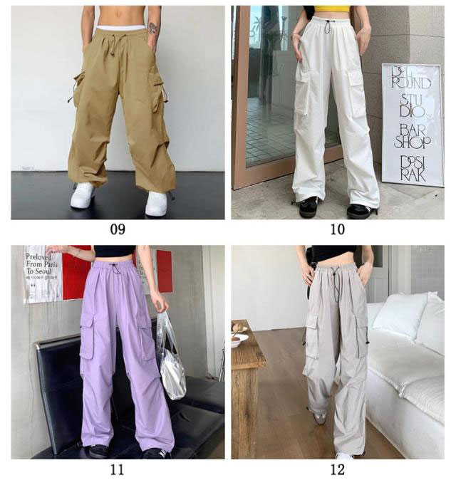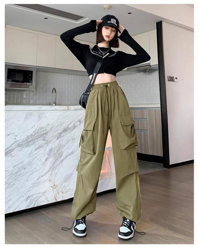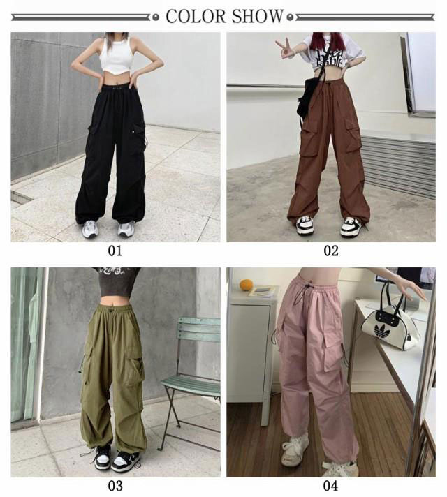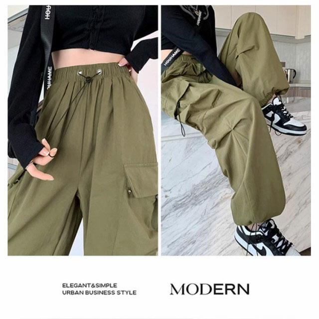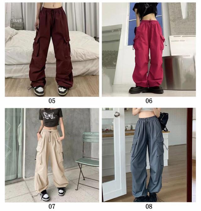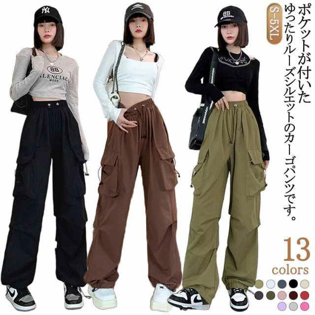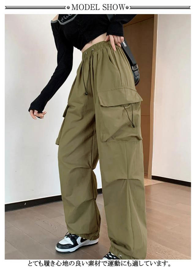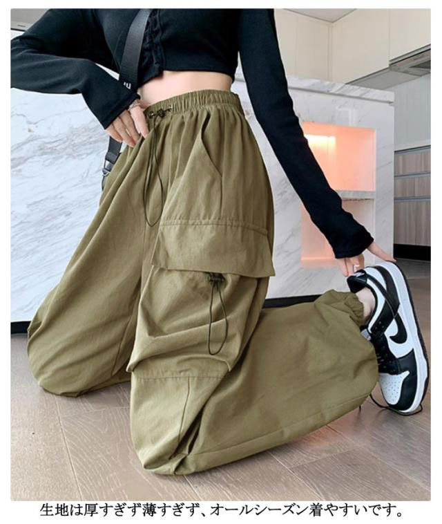 カーゴパンツ レディース ジョガーパンツ 長ズボン ボトム かっこいい ダンス ヒップホップ ストリート オールシーズン 韓国ファッション トレンド 韓国 ミリタリーパンツ 太め ゆったり 黒 カーキ 大きいサイズ サイドポケット パラシュートパンツ 送料無料