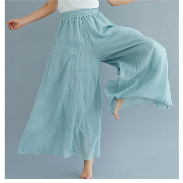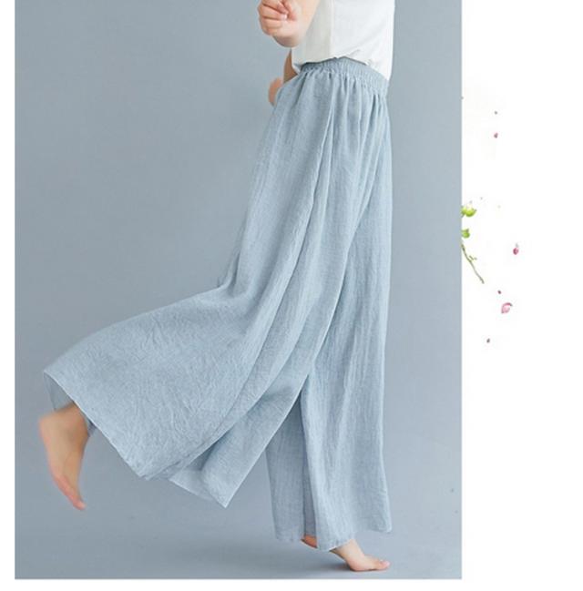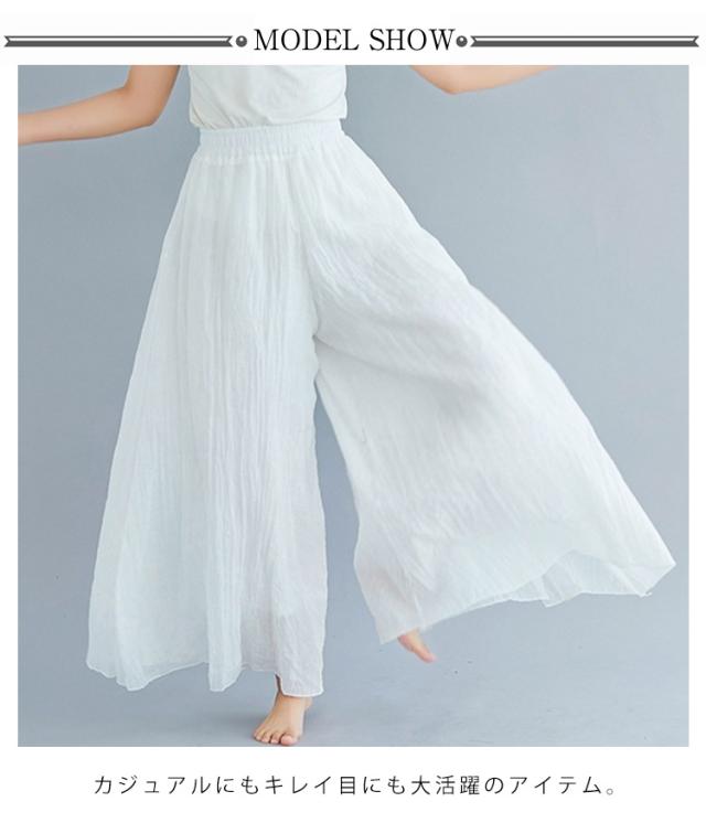 ワイドパンツ ロング丈 薄手 綿麻パンツ 涼しい 85cm 95cm ウエストゴム 夏服 レディース 長ズボン リネン ガウチョパンツ ハイウエスト きれいめ 体型カバー ゆったり 涼しい 無地 着回し易い シンプル 無地 カジュアル 通勤 大人 女性 ボトムス 送料無料