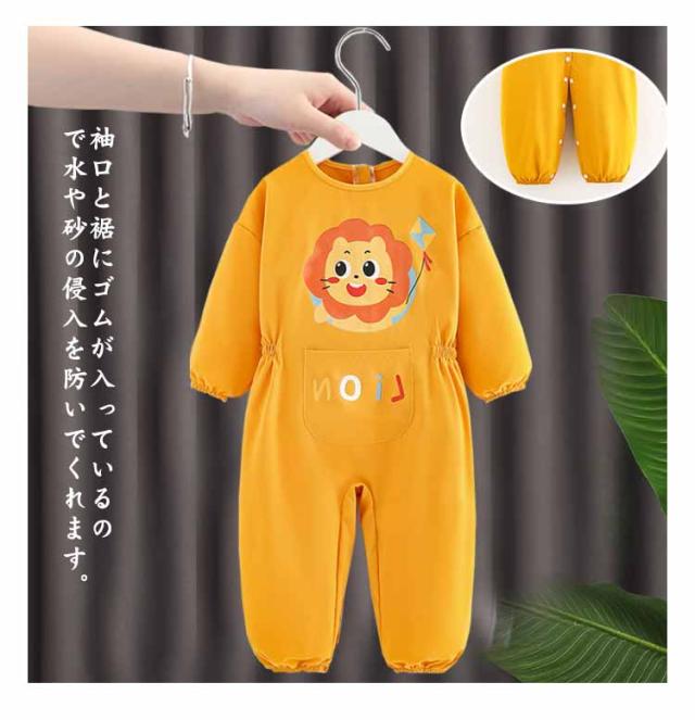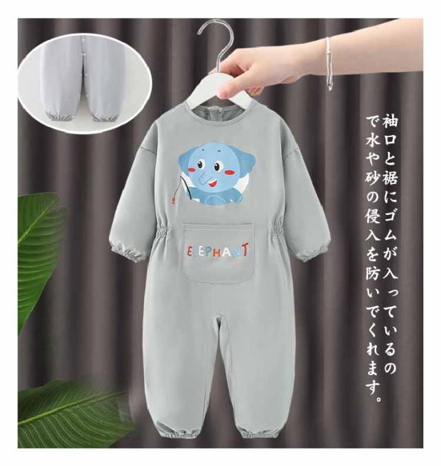 プレイウェア 子供 キッズ 長袖 お砂場着 撥水 防水 スモック ベビー 男の子 女の子 ロンパース 遊び着 つなぎ ジャンプスーツ ファスナー付き 汚れ防止 水遊び 公園 小学生 幼稚園 保育園 ギフト お出かけ 90 100 110 120 送料無料