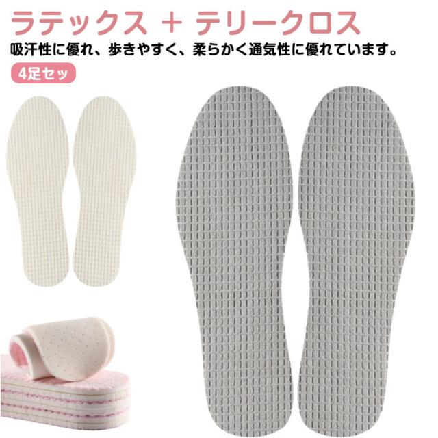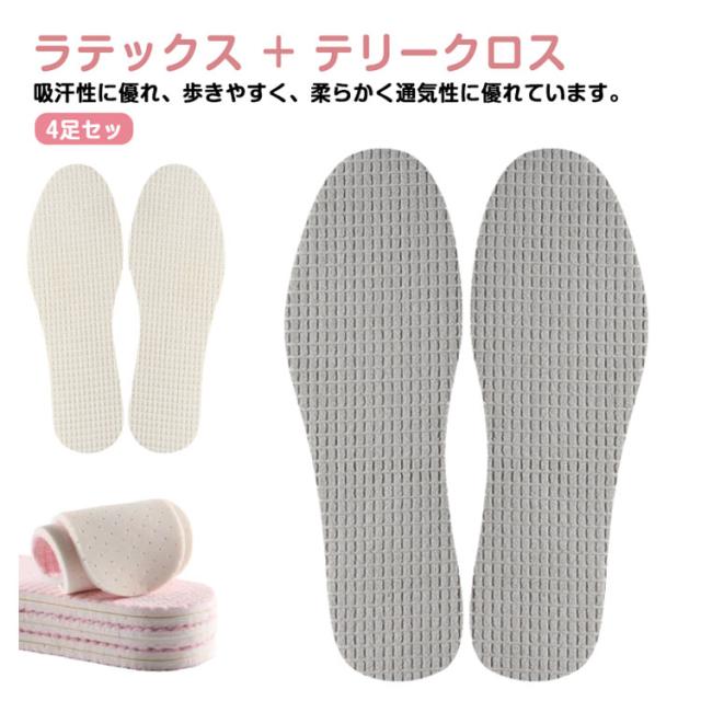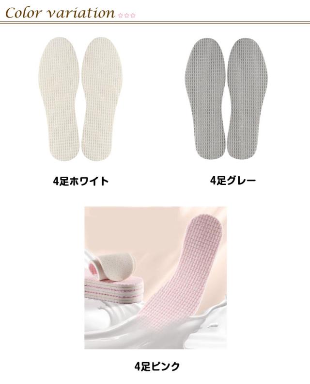 4足セット スニーカー サンダル用 インソール 吸汗 防臭 夏 柔らかい 洗える メンズ レディース 消臭 インソール メンズ レディース 靴 中敷き