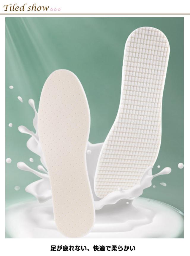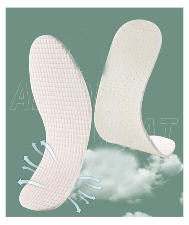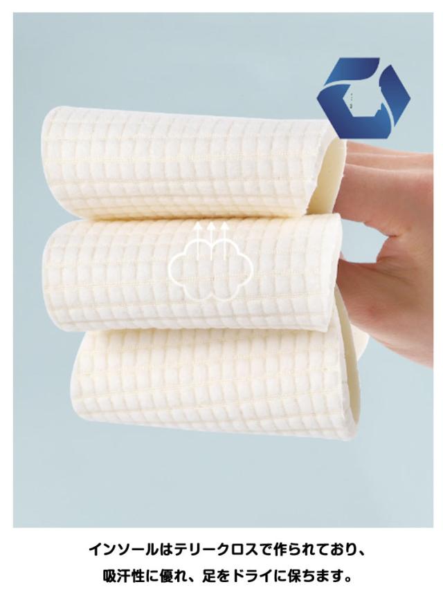 | ラテックス + テリークロス 吸汗性に優れ、歩きやすく、柔らかく通気性に優れています。 足が疲れない、快適で柔らかい インソールはテリークロスで作られており、吸汗性に優れ、足をドライに保ちます。 | |