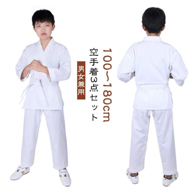 子供 空手着 3点セット ジュニア 大人 100-180cm 空手衣 白帯 上下+帯 セット 空手 空手道着 初心者 入門者向け 男女兼用 空手スーツ 子ども 授業用 道着 練習用 合気道 柔道授業 柔道着 道衣 中学生 フルコンタクト